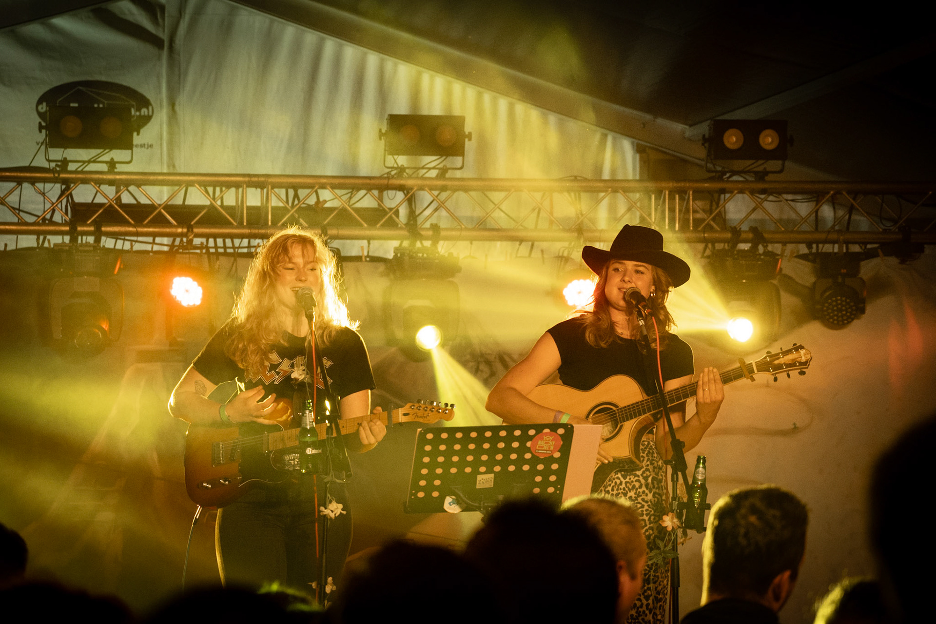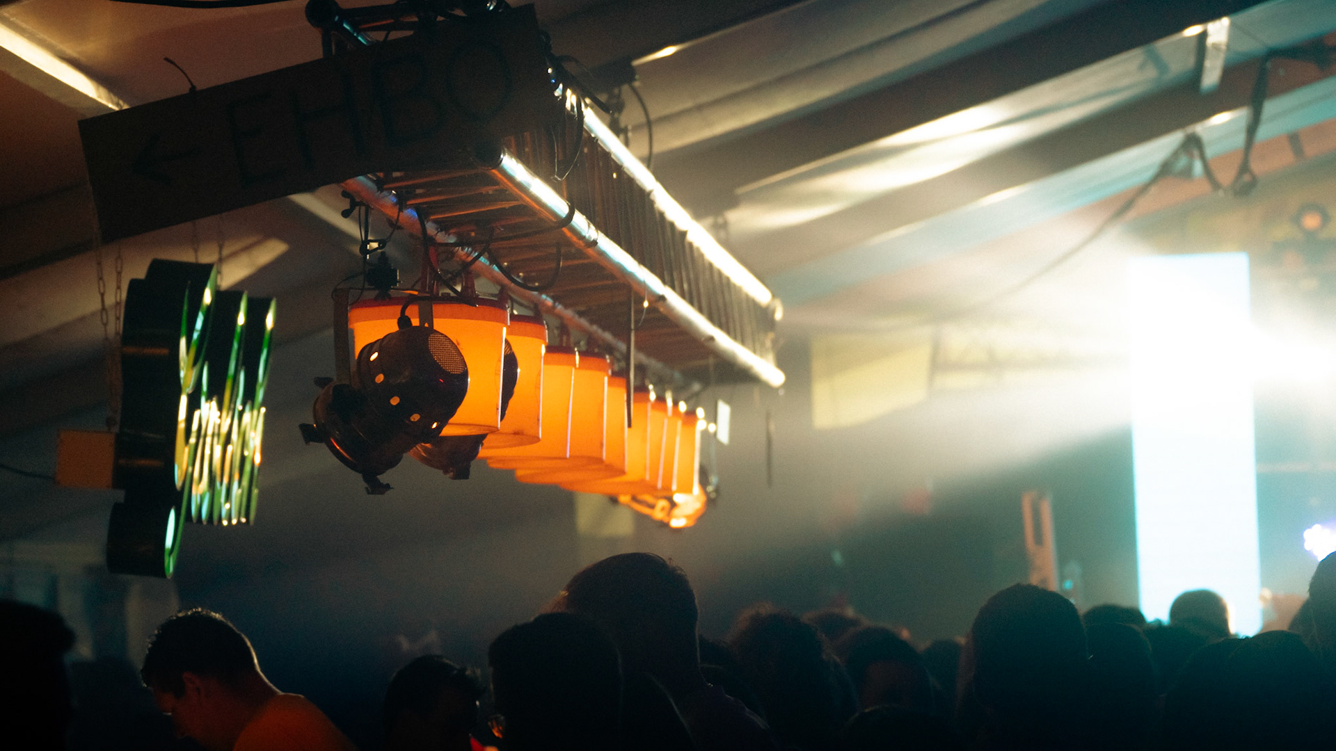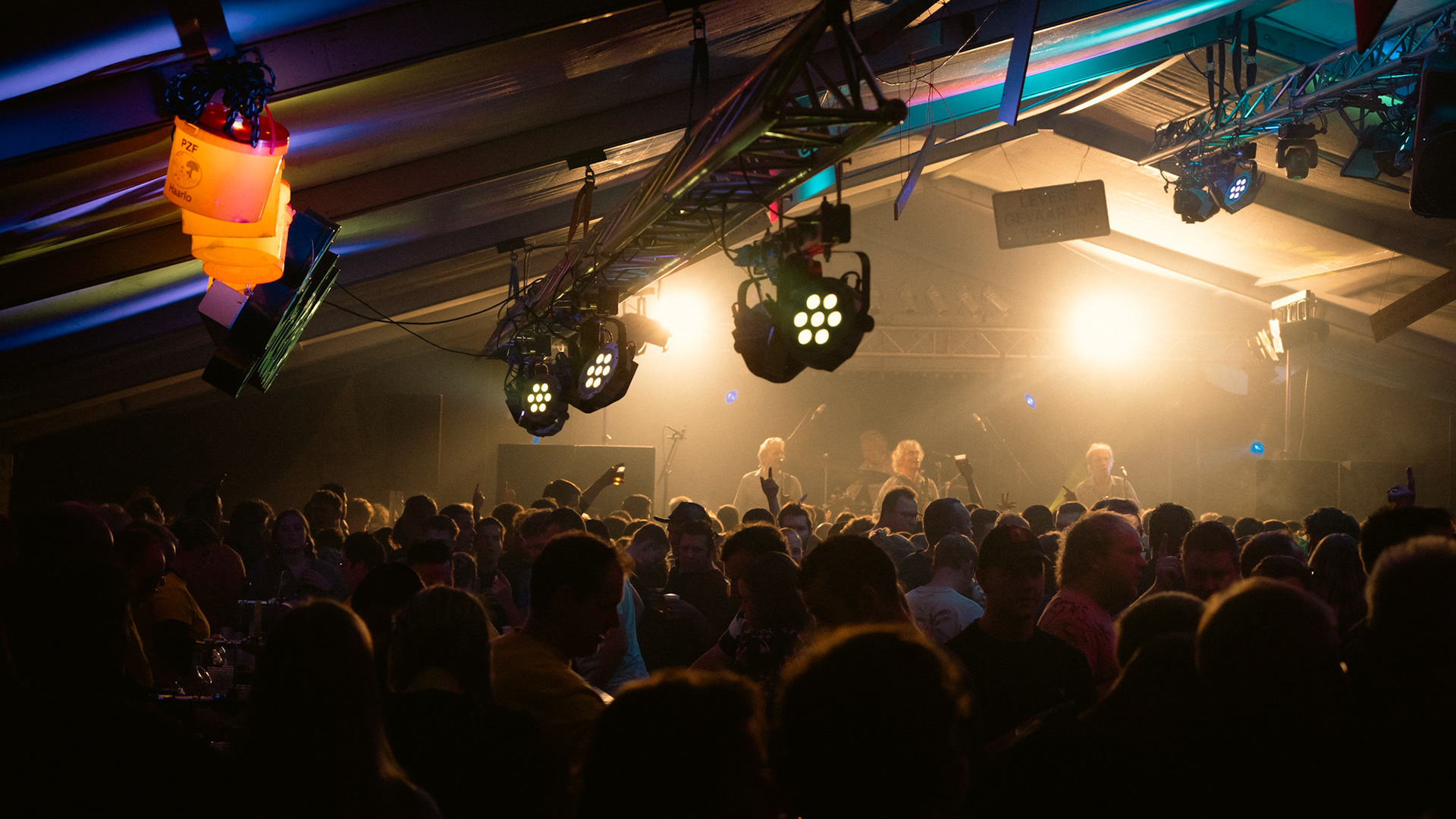 Onder de gekleurde lampen