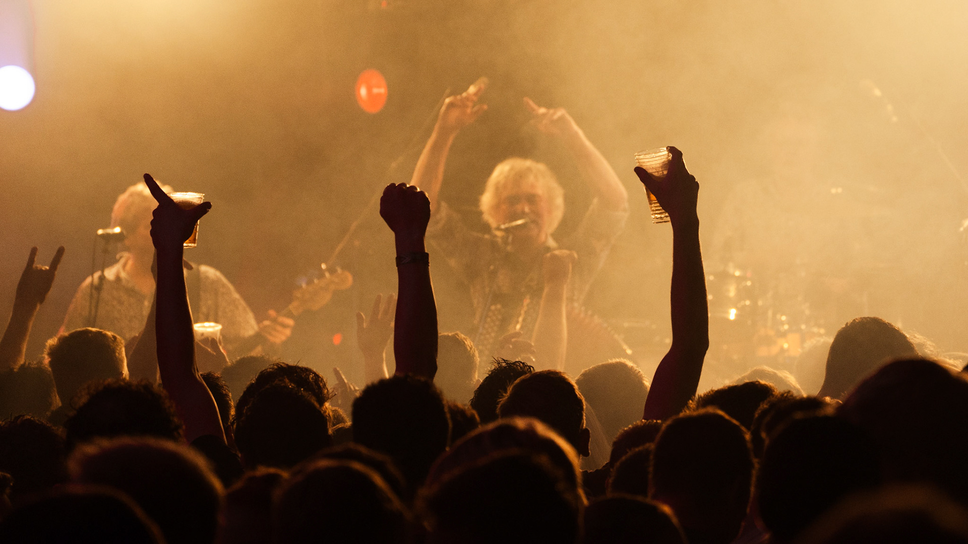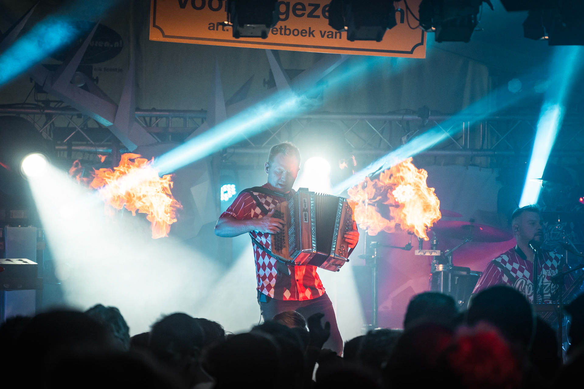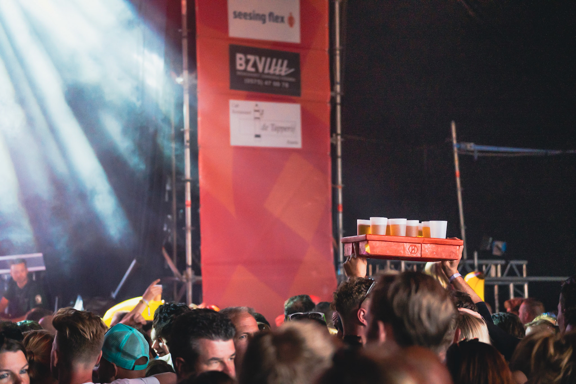 Onder de gekleurde lampen